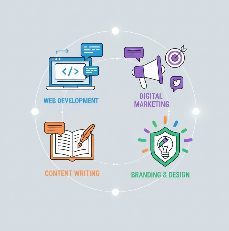 Digital Marketing Solutions – From SEO and social media campaigns to pay-per-click ads and content strategies, we help businesses build strong online visibility, attract the right audience, and convert leads into loyal customers.